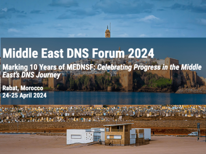 - Middle East Domain Name System Forum (MEDNSF) celebrates its 10th anniversary, co-organised by The National Telecommunications Regulatory Agency of Morocco and ICANN, scheduled for April 24-25, 2024, both online and in Rabat, Morocco.