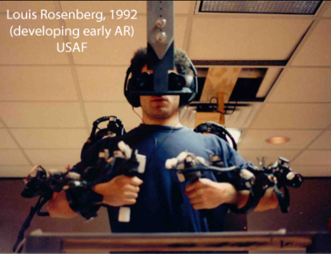 The earliest functional AR systems that provided immersive mixed-reality experiences for users were invented in the early 1990s, starting with the Virtual Fixtures system developed at the U.S. Air Force’s Armstrong Laboratory in 1992.