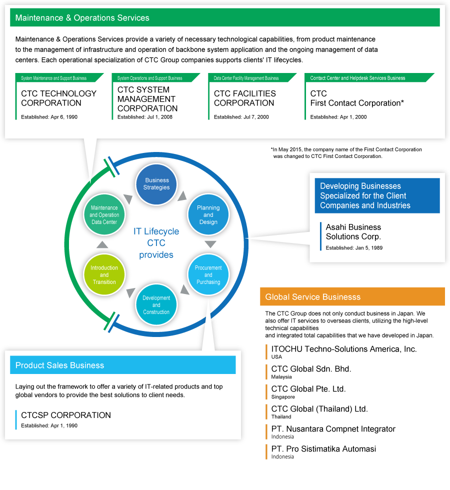 CTC is a comprehensive IT services company that partners with its customers. From consulting to design, development and construction, operational and maintenance support, CTC combines sophisticated IT solutions and cloud services to find solutions to customer issues. It provides services in all fields including communication, broadcasting, manufacturing, finance, logistics and retail, public services, life sciences, science and engineering.